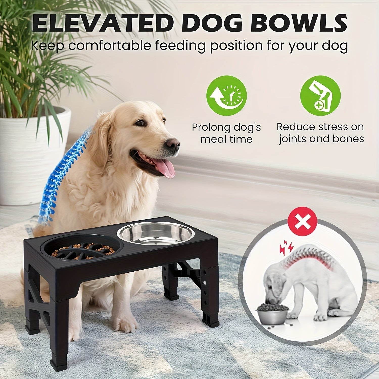 - Adjustable height for growing pets